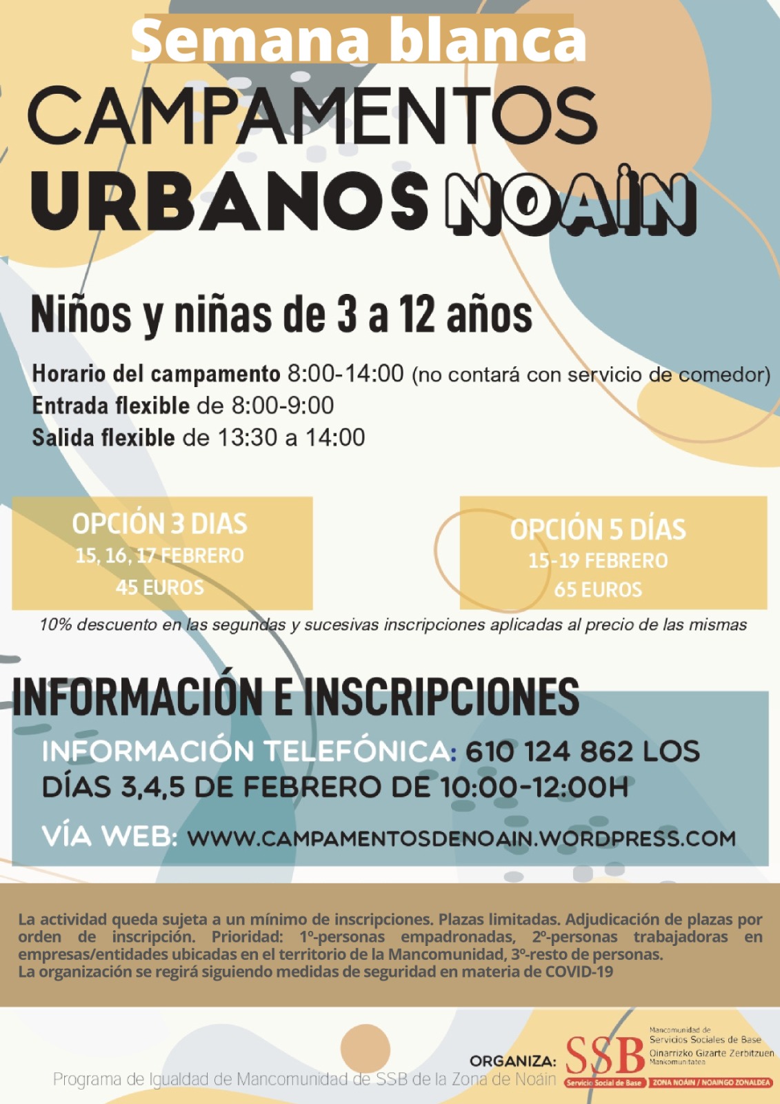 Buenas tardes; adjuntamos información referida al recurso de conciliación organizado desde el Programa de Igualdad de la Mancomunidad de SSB de Zona Noain, para las vacaciones escolares de Semana Blanca/Carnaval 2021.