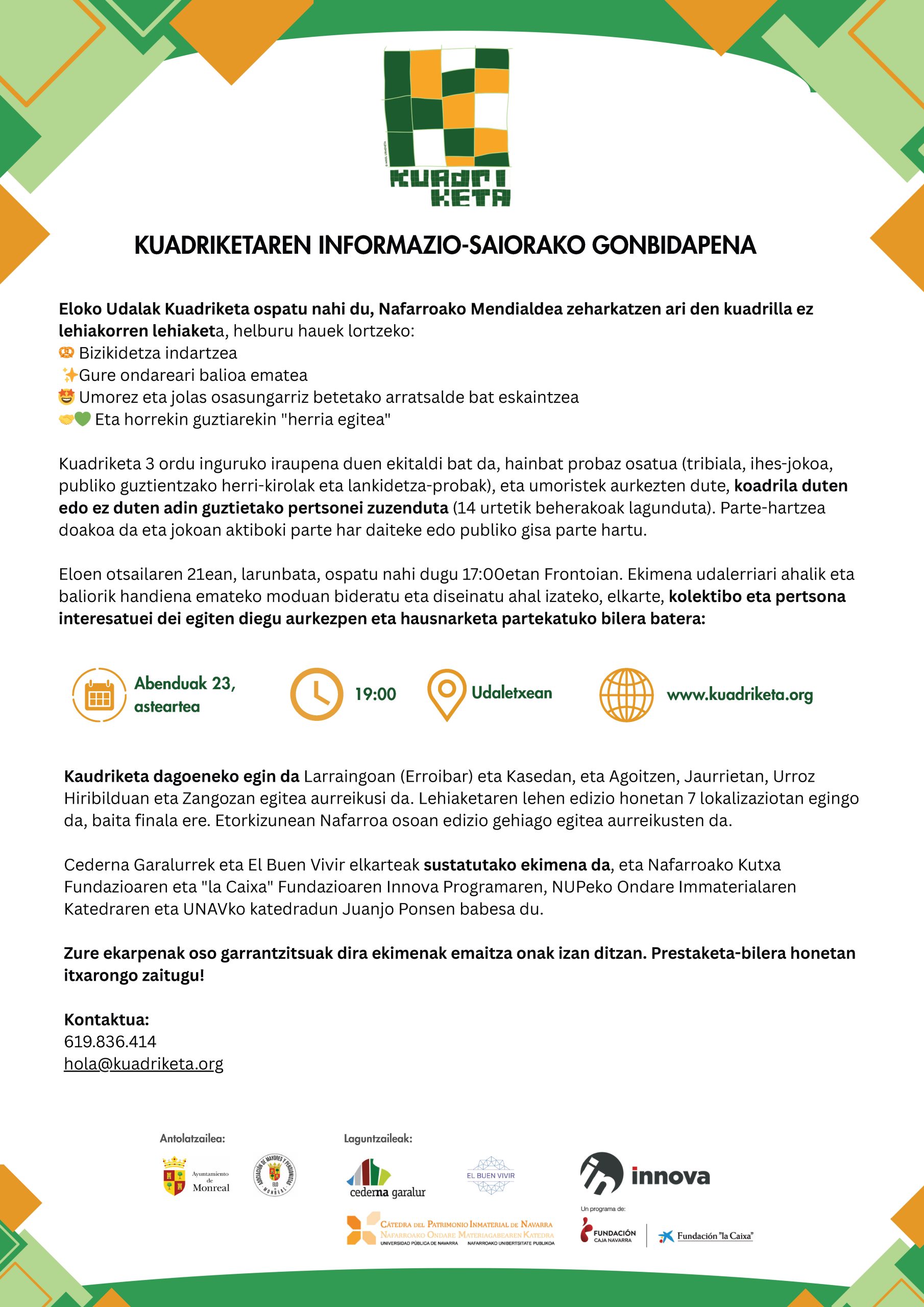 – Lugar: En las oficinas del Ayuntamiento de Monreal/Elo, o bien, por correo postal.