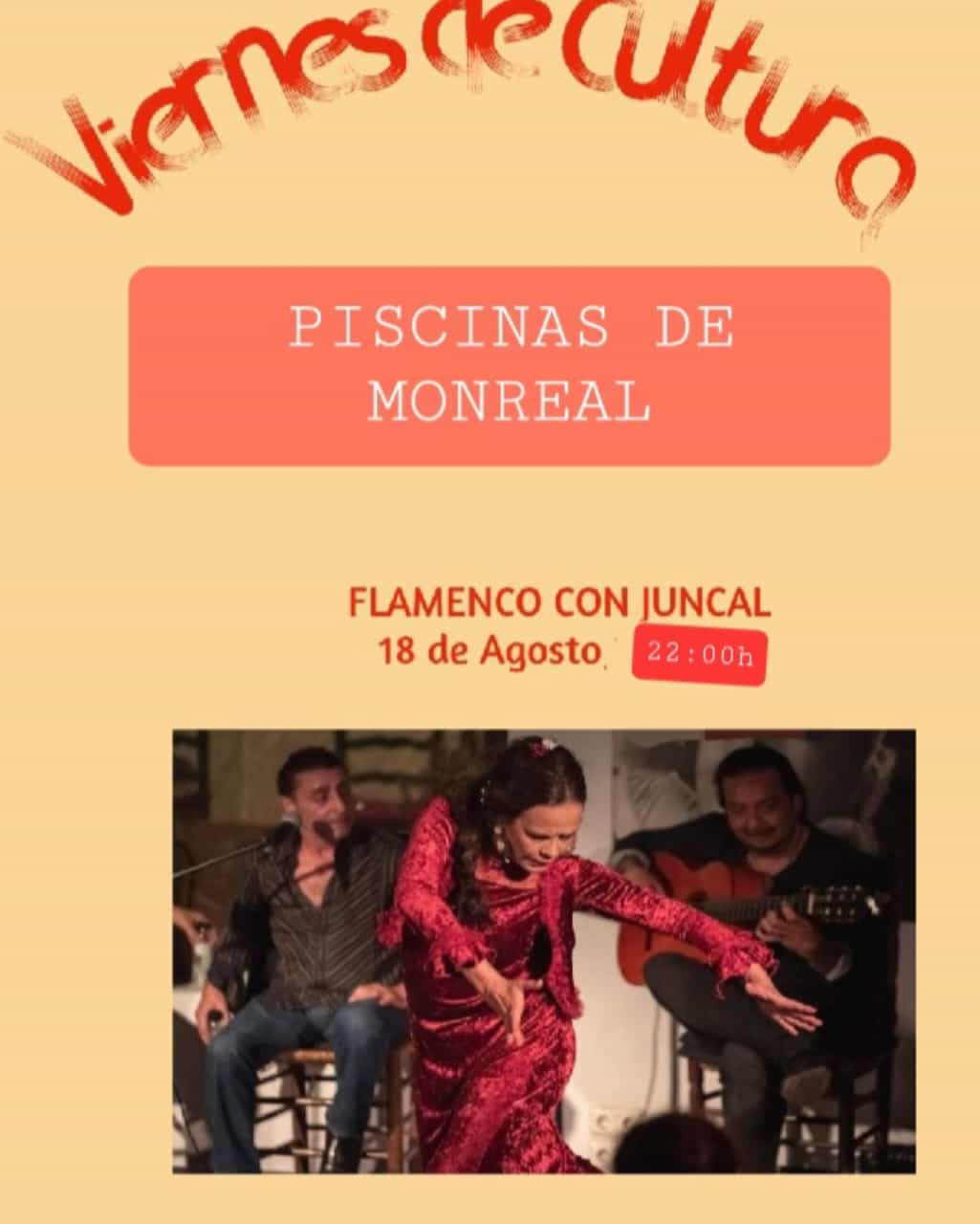 VIERNES DE CULTURA: FLAMENCO CON JUNCAL izgusuario0814 agosto, 2023 Monreal - Noticias, Portada 18 de agosto Piscinas de Monreal 22:00 h.